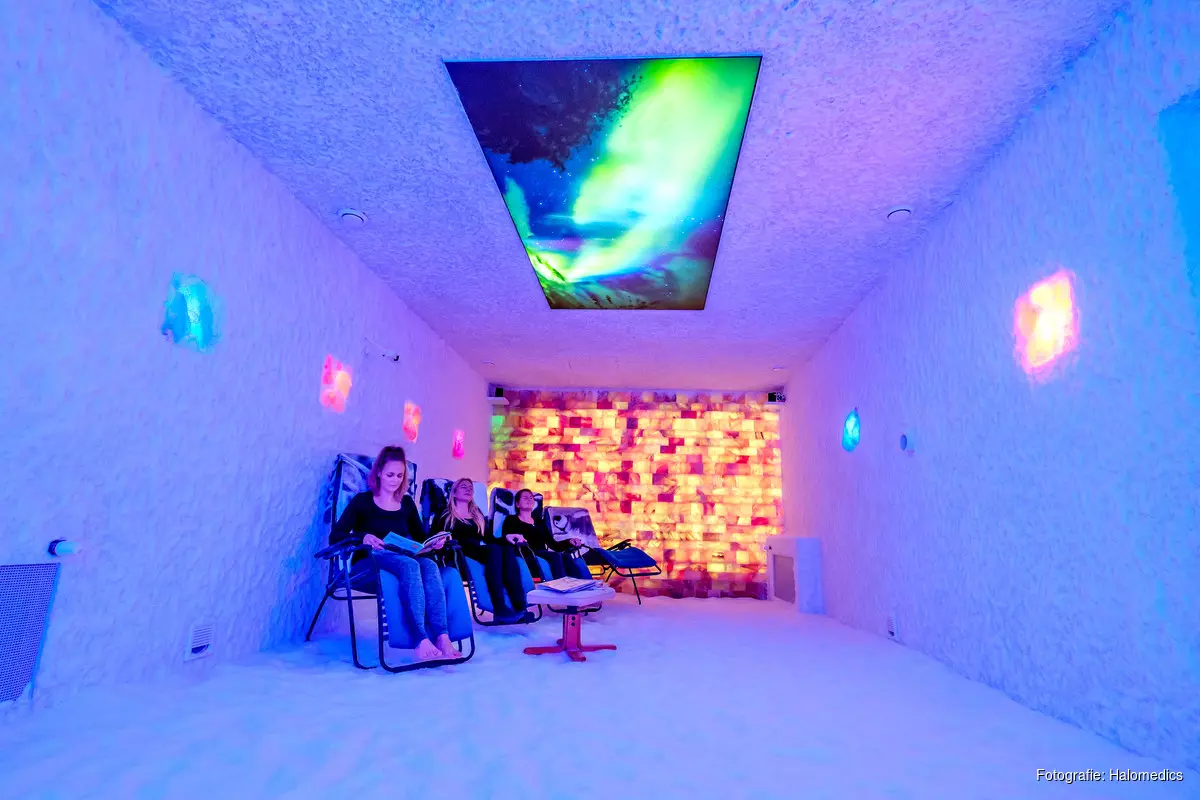 Halotherapie is een medicijnvrije en natuurlijke behandelwijze en wordt wereldwijd al veel toegepast. In een sessie die 50 minuten duurt, vertoeft u in een kamer die geheel opgebouwd is uit zout en waarbij een Halogenerator medicinaal zout vermaalt in hele fijne deeltjes. Het zout komt op de huid en u inhaleert het zout waardoor het diep in de longblaasjes komt. Het zout heeft een ontstekingsremmende werking en is ook bacterie – en schimmeldodend.