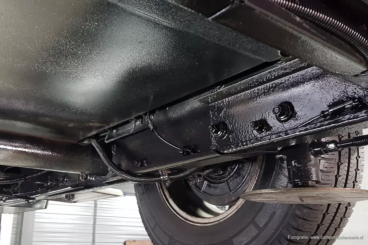 Is de bodem in goede staat dan wordt eerst alle wegenvuil, olieresten en mogelijk ander vuil verwijderd. Daarna wordt de gehele bodem ingespoten met Prolan, zo ook alle holle ruimtes en met een spiraal wordt, op druk, de moeilijkst bereikbare plaatsen voorzien van een beschermlaag. Voordat er met de camper kan worden gereden zal er eerst een “uitharding” moeten plaats vinden. De beschermlaag hardt niet echt uit maar het heeft wel tijd nodig om in elk gaatje en hoekje te komen.