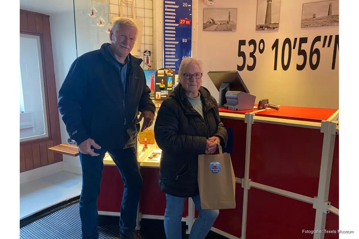 De echtparen Mulder en Wesselink uit Salland zijn buren en samen op vakantie op Texel. Van beide stellen bleef een van de twee echtelieden beneden, omdat het beklimmen van de 118 treden fysiek niet mogelijk was. Zo kwam het dat er twee buren voor de kassa verschenen. Ze waren heel verrast toen bleek dat ze de 75.000ste bezoeker waren.
