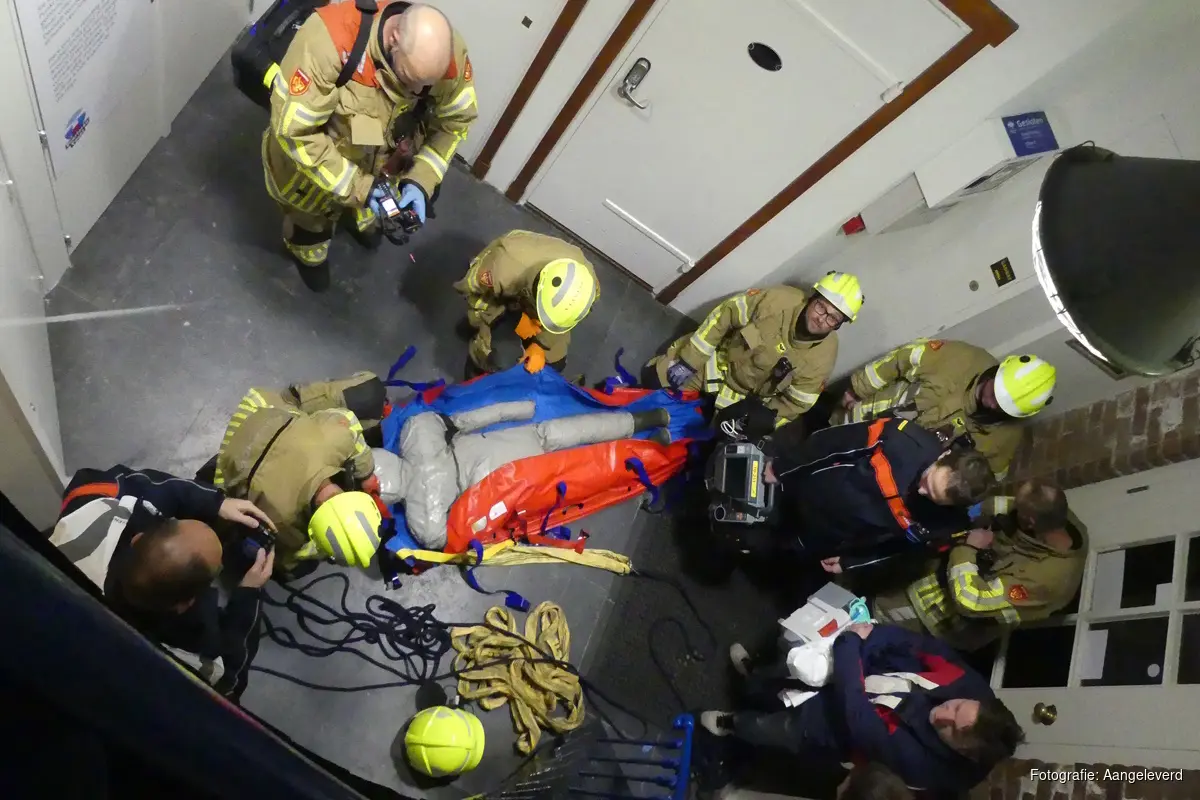Wanneer iemand medische hulp nodig heeft, zijn ambulancemedewerkers de aangewezen personen om dit te verlenen. Bevindt de persoon zich op hoogte en moet hij of zij naar beneden vervoerd worden, dan is dat de taak van de brandweer. Vandaar dat de oefening is uitgevoerd door beide hulpdiensten.