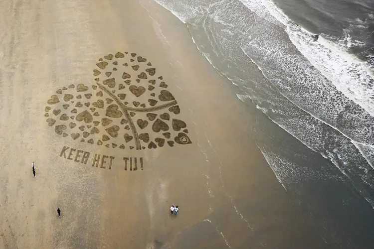 In aanloop naar Wereld Hart Dag, vraagt men met deze indrukwekkende strandtekening van 30x40 meter extra aandacht om hart- en vaatziekten een halt toe te roepen.